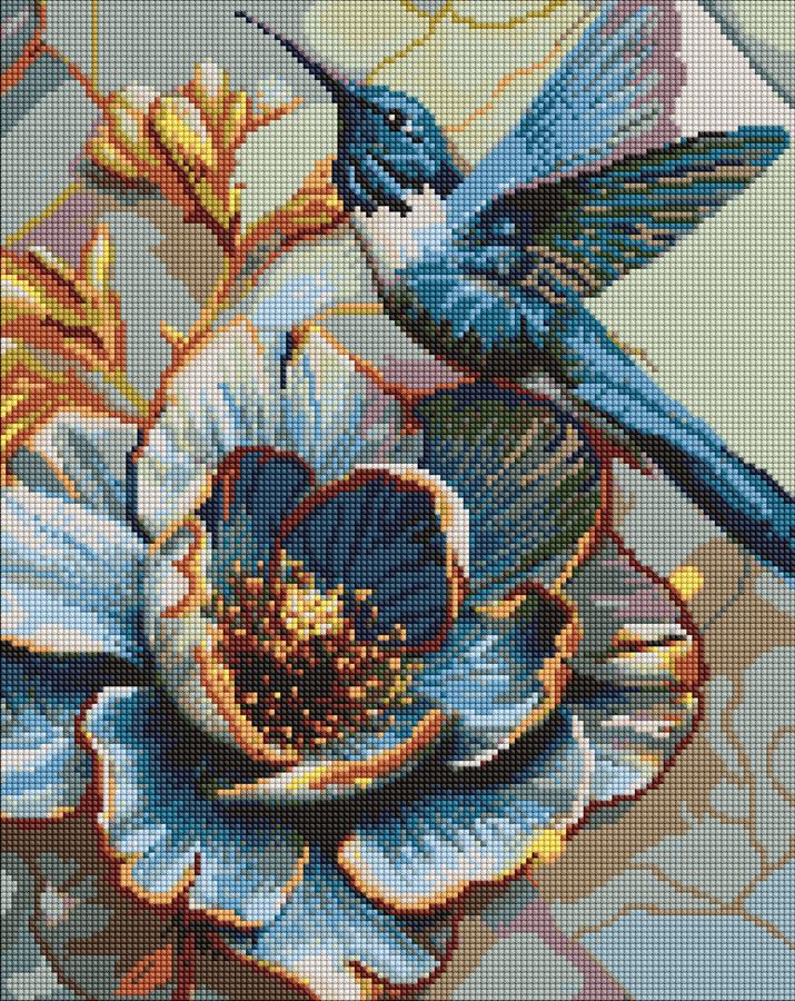 Алмазная мозаика "Колибри на пионе" 40х50см, термопакет, ТМ Идейка, Украина