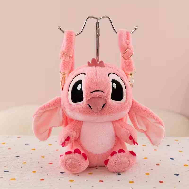 Рюкзак плюшевая сумка Стич Ангел розовый 25*21см, пак. 30*30см