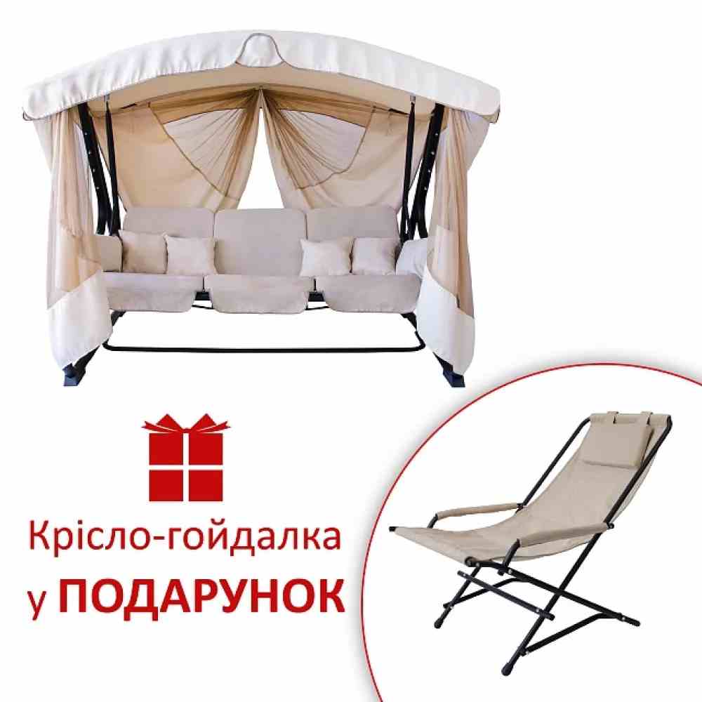 Качели садовые "Алиса" (Айвори) Кресло-качели в подарок, висота до сидения 50см, До 350кг, в кор. 207*90*42см, ТМ VITAN, Украина