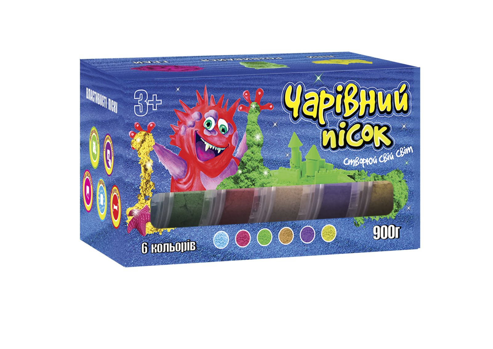 Волшебный песок 6 цветов по 0,150 кг, в кор. 19,5*10,5*10см, ТМ Стратег, Украина