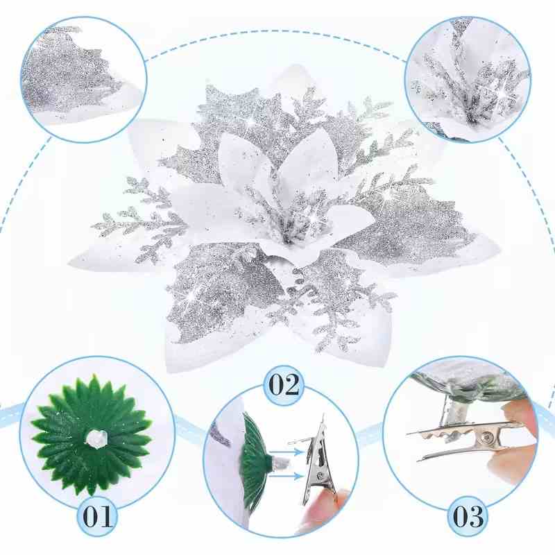 Набор рождественских цветочных зажимов серебряных 10цветов+10зажимов, пак. 22*26см