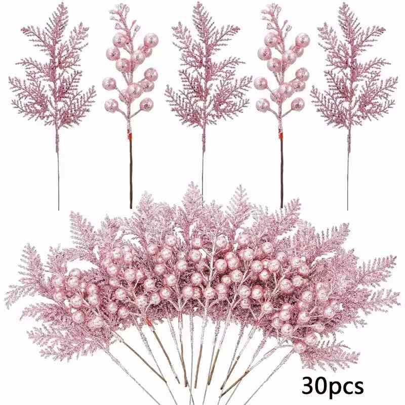 Ветки сосны и ветки с ягодами розовый 30шт, пак. 35*20см