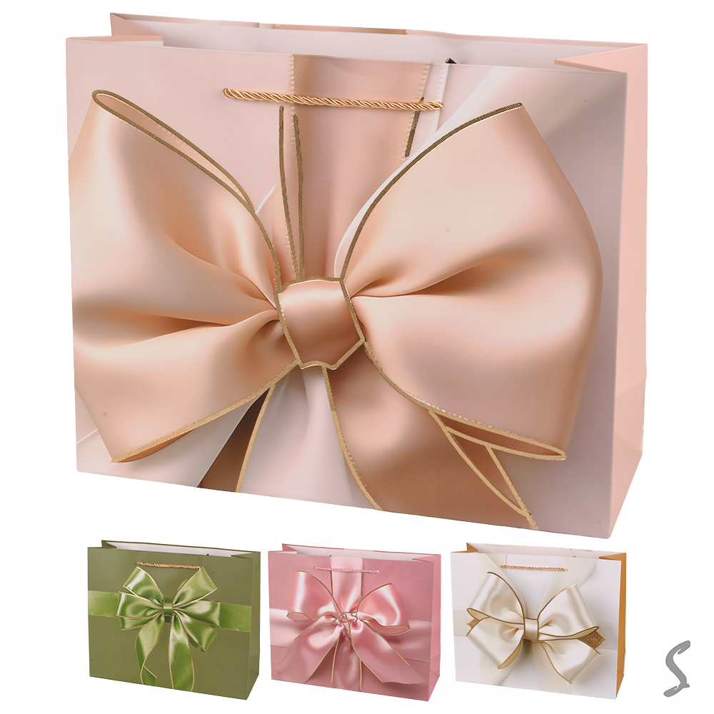 Пакет подарочный бумажный M Bow 32*26*11см, ЦЕНА ЗА УП. 12ШТ