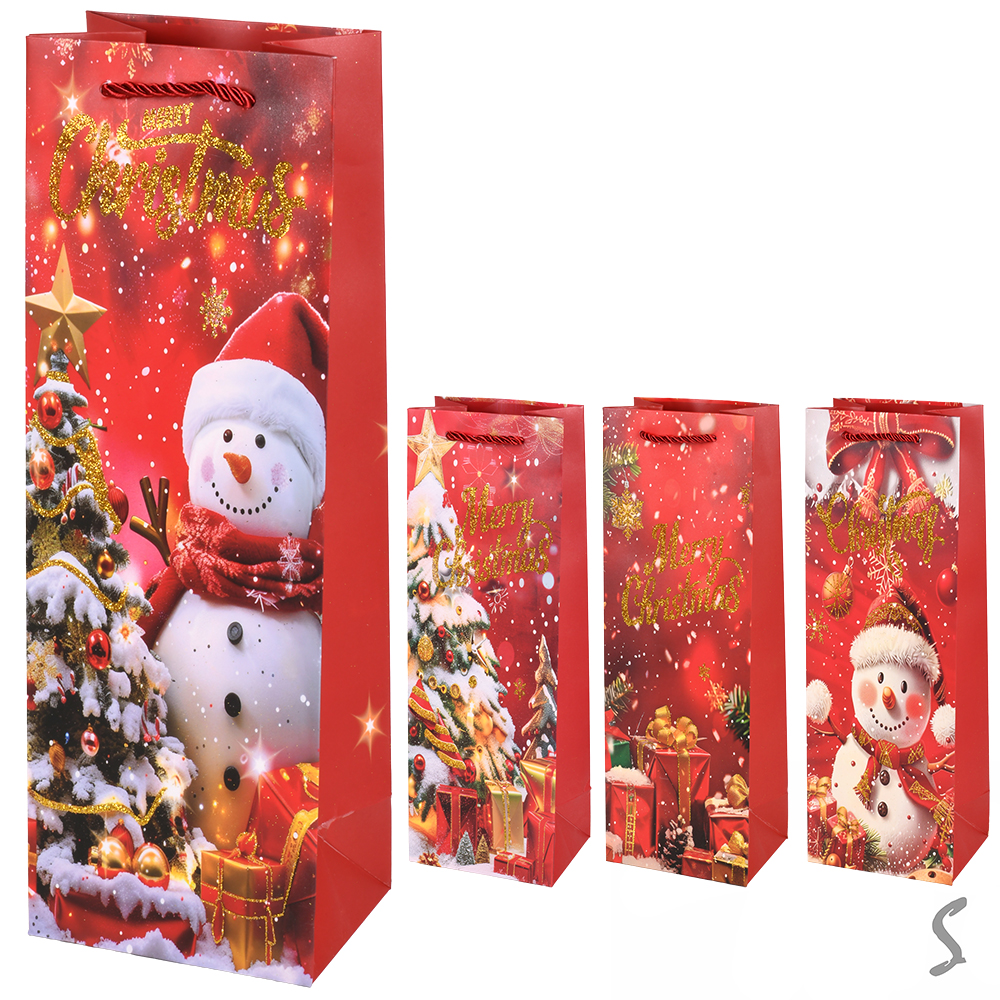 Пакет новогодний бумажный под бутылку Merry Christmas 12*9*35см, ЦЕНА ЗА УП. 12ШТ