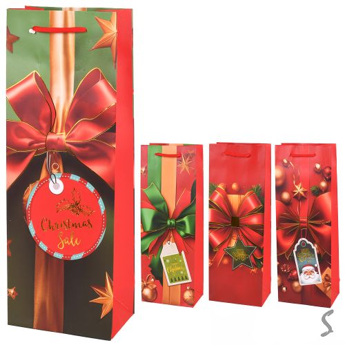 Пакет новогодний под бутылку Santa 12*10*35см, ЦЕНА ЗА УП. 12ШТ