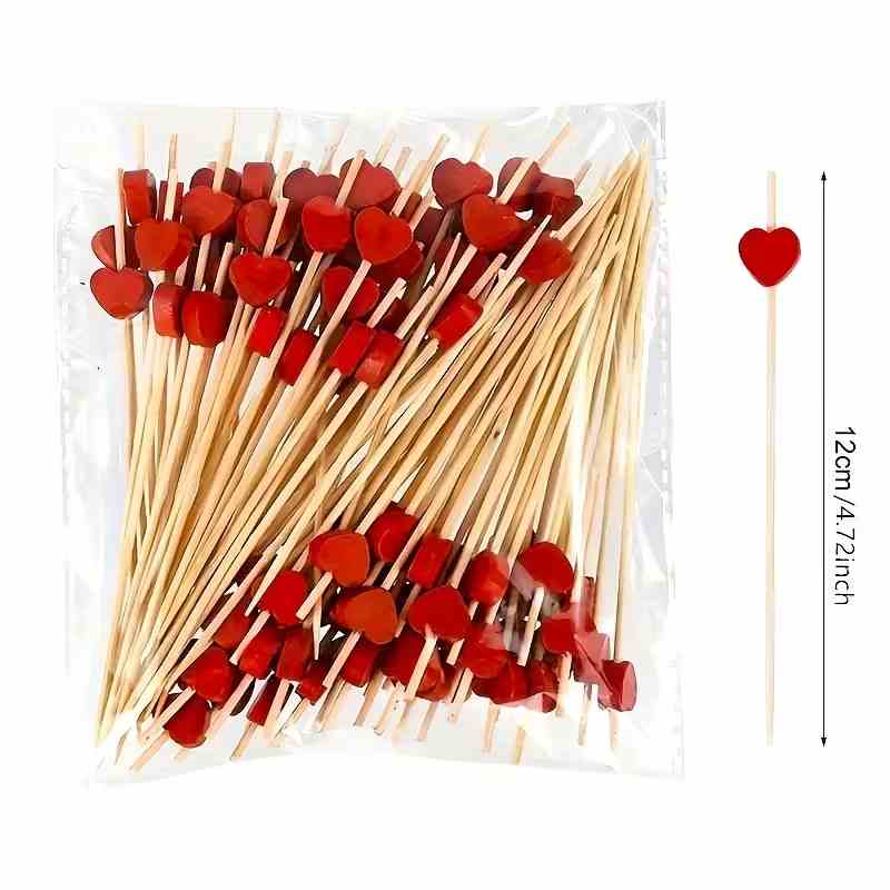 Шпажки 13см для декора красные сердца 100шт, пак. 15*10см
