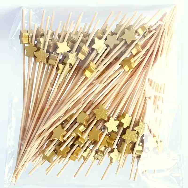 Шпажки для декора золотая звезда 100шт, пак. 15*10см