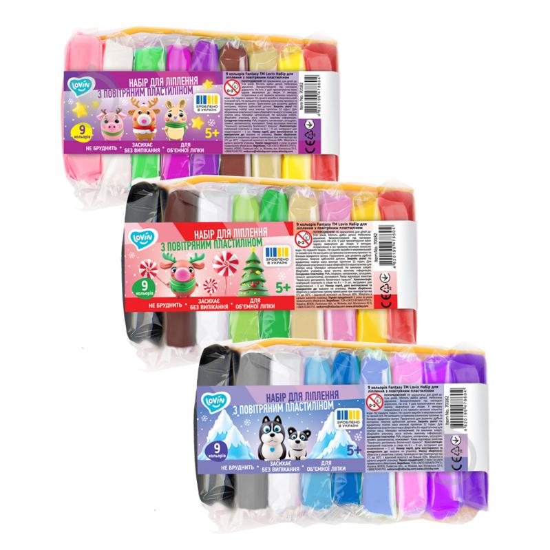 Набор для лепки с воздушным пластилином 9 цветов Fantasy ТМ Lovin, пак.15*8*3см