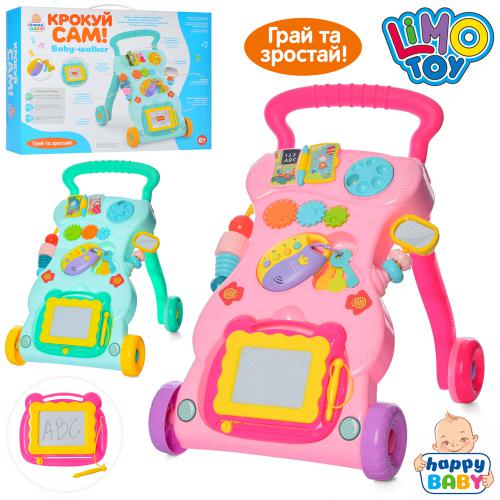 Каталка-ходунки LIMO TOY игровой центр-досточка для рисования, музыка, свет, трещотка, 2 цвета, на бат., в кор. 46*34*11см