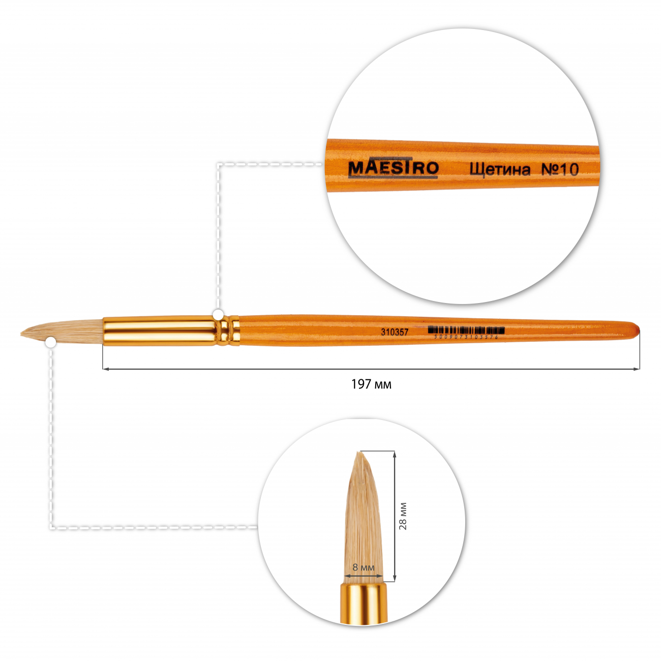 Кисть художественная «Maestro» щетина, круглая №10, 22см – это мощный инструмент для художественного творчества, идеально подходящий для работы с насыщенными красками и создания выразительных мазков.Она предназначена для использования с масляными, акриловыми и темперными красками. Круглая форма кисти позволяет легко рисовать широкие и детализированные линии, а щетина обеспечивает контроль над краской и выразительность мазков.Преимущество кисти – в её прочности и долговечности: деревянная ручка удобна в руке, алюминиевая обойма надежно фиксирует ворс, а щетина сохраняет форму даже при активном использовании. Для длительного срока службы рекомендуется тщательно промывать кисть после работы и хранить ворсом вверх.