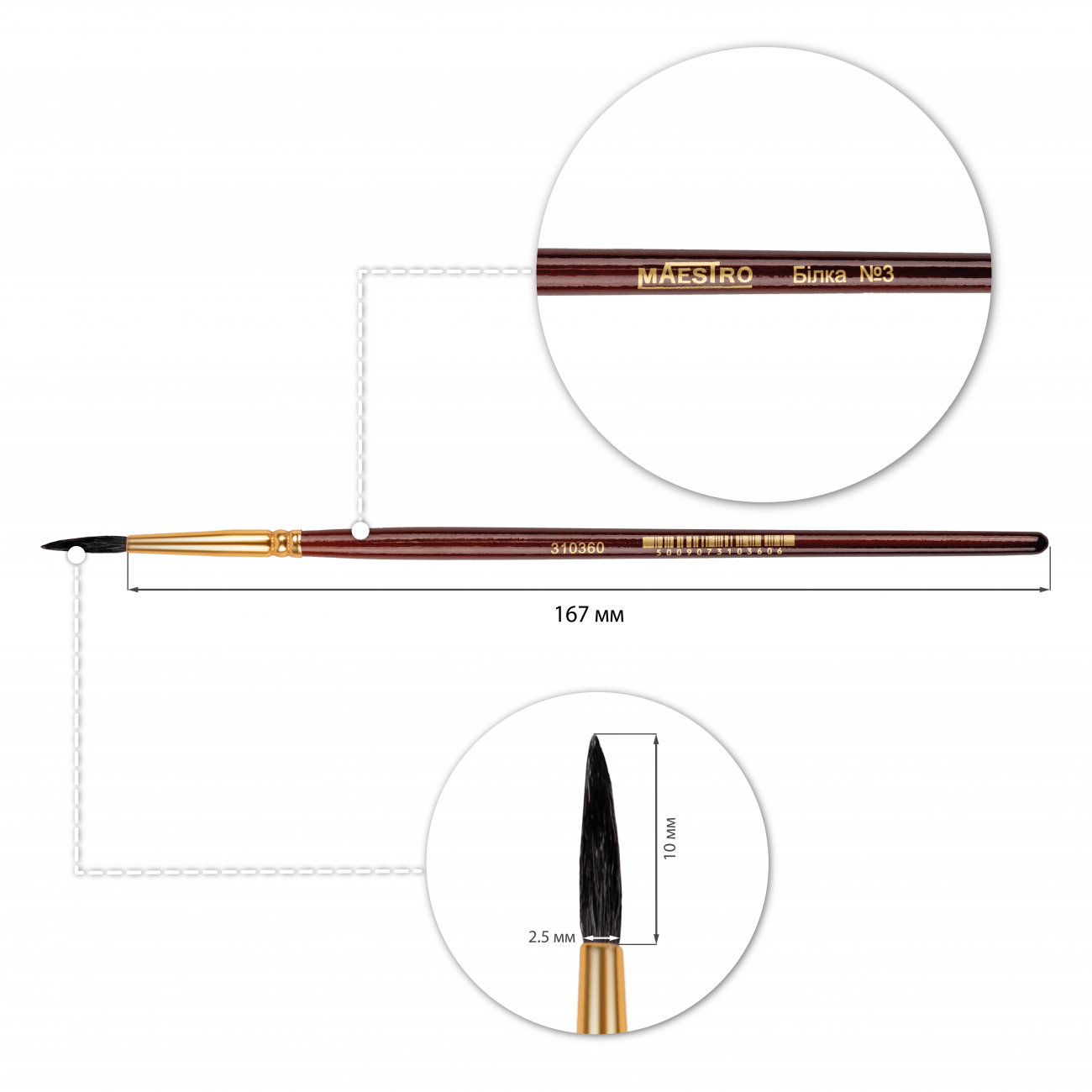 Кисть художественная "Maestro" белка, круглая №3, 18см, ТМ 1 Вересня, Украина