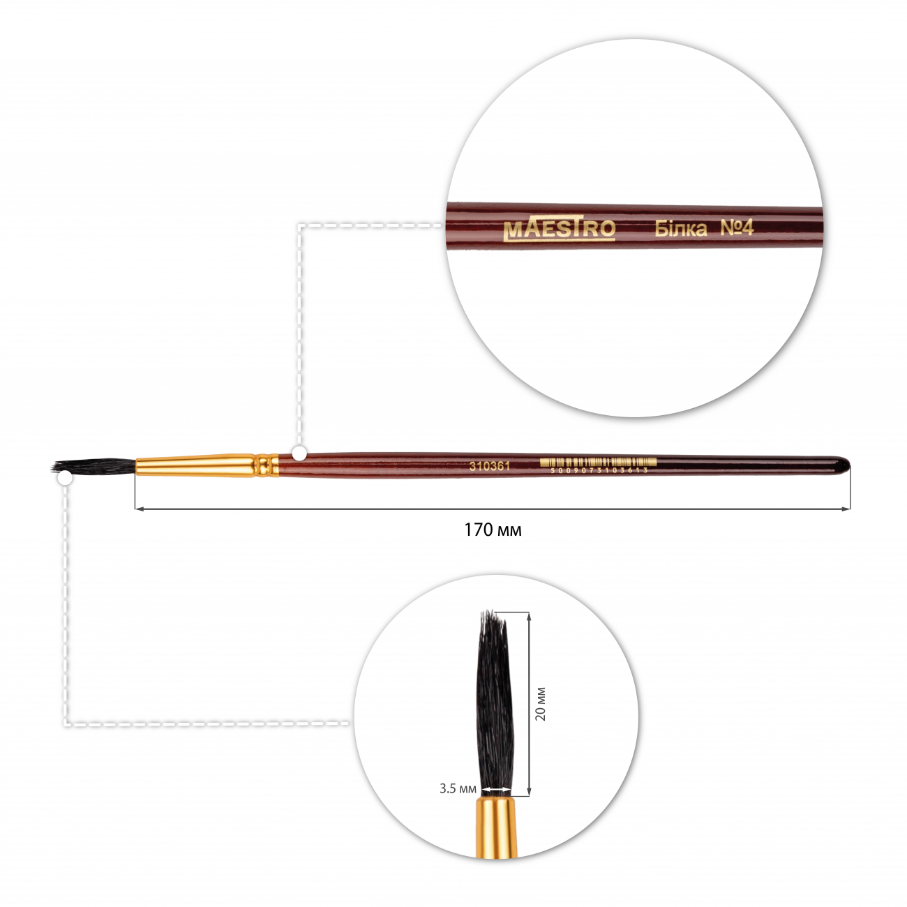 Кисть художественная "Maestro" белка, круглая №4, 19см, ТМ 1 Вересня, Украина