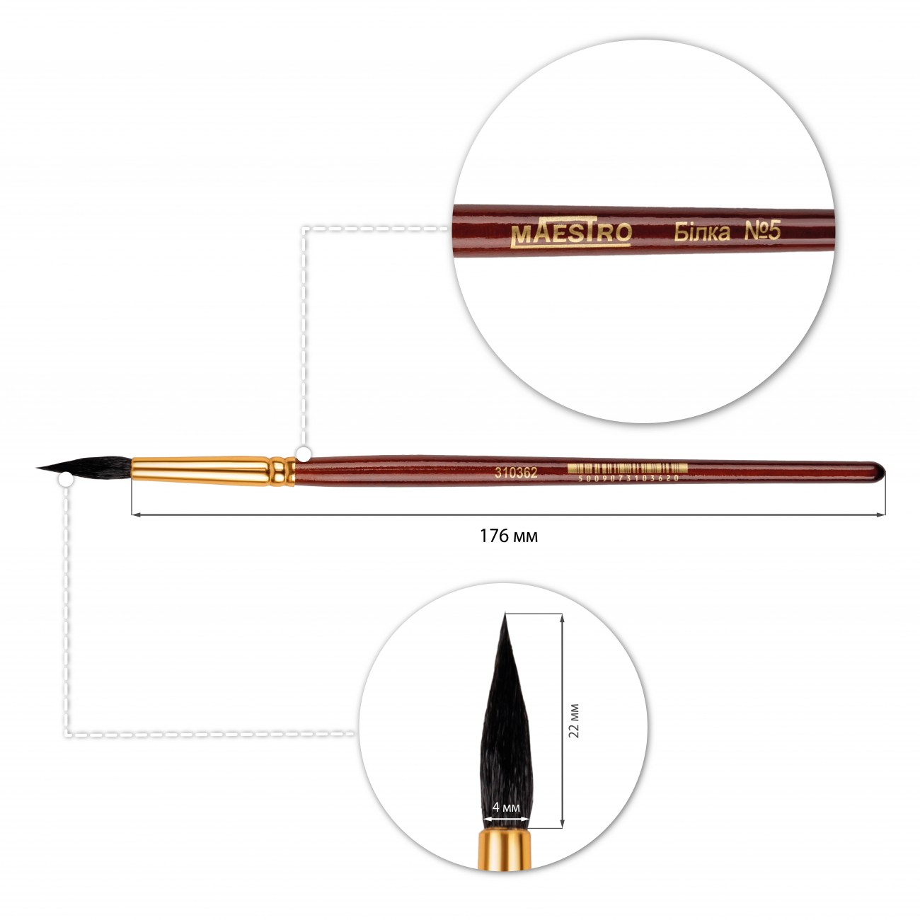 Кисть художественная "Maestro" белка, круглая №5, 19см , ТМ 1 Вересня, Украина
