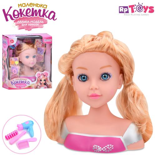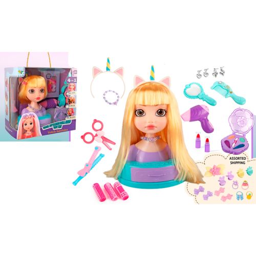 Кукла голова для причесок 20см, фен, расческа, заколки и резинки для волос, в кор. 23*28,5*12см (30шт)