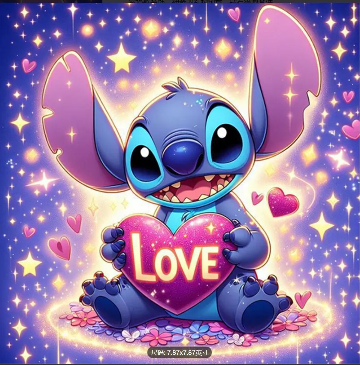 Алмазная мозаика "Стич в свете сердец", 20*20см, на рамке, кор. 21*21*2,5см, ТМ Dreamtoys