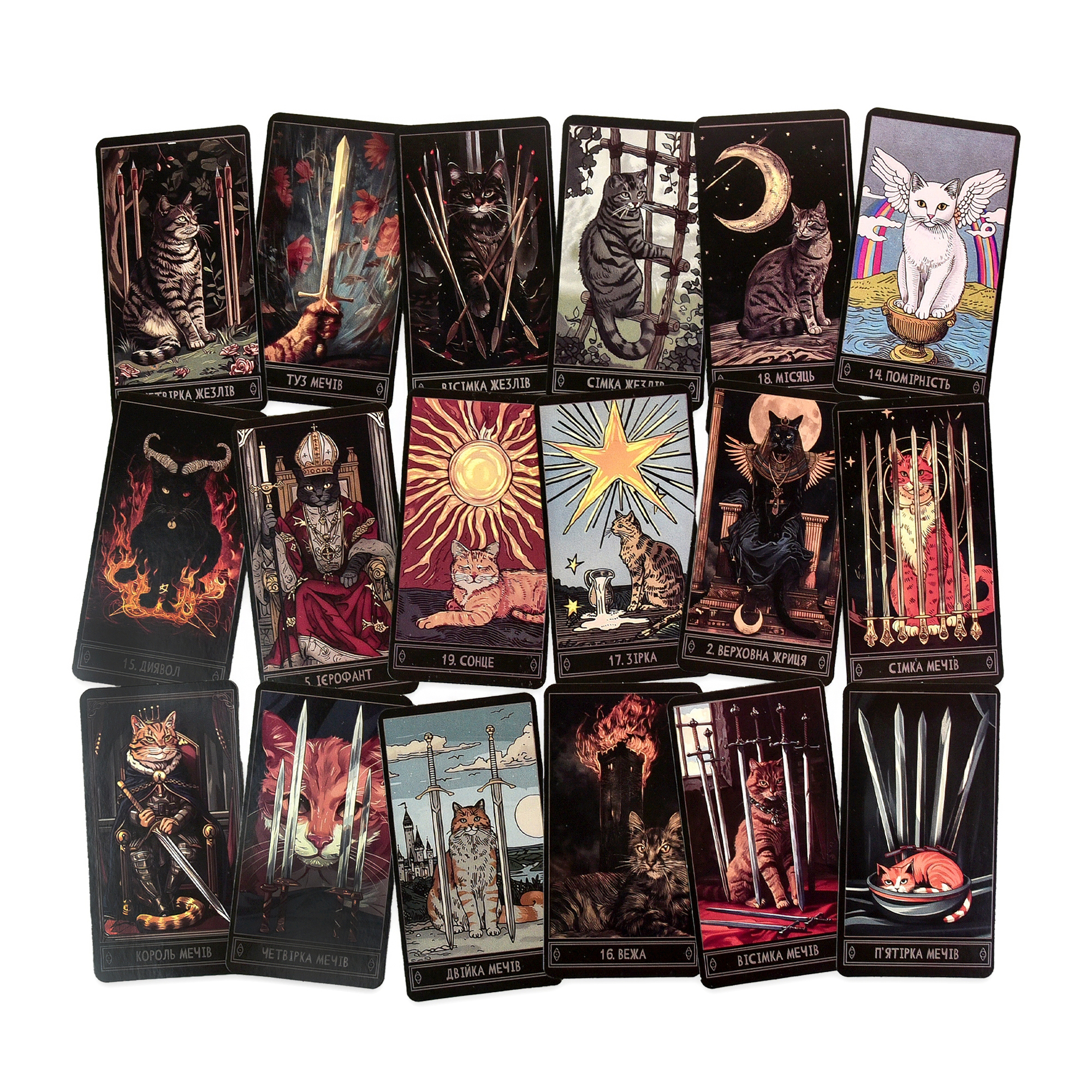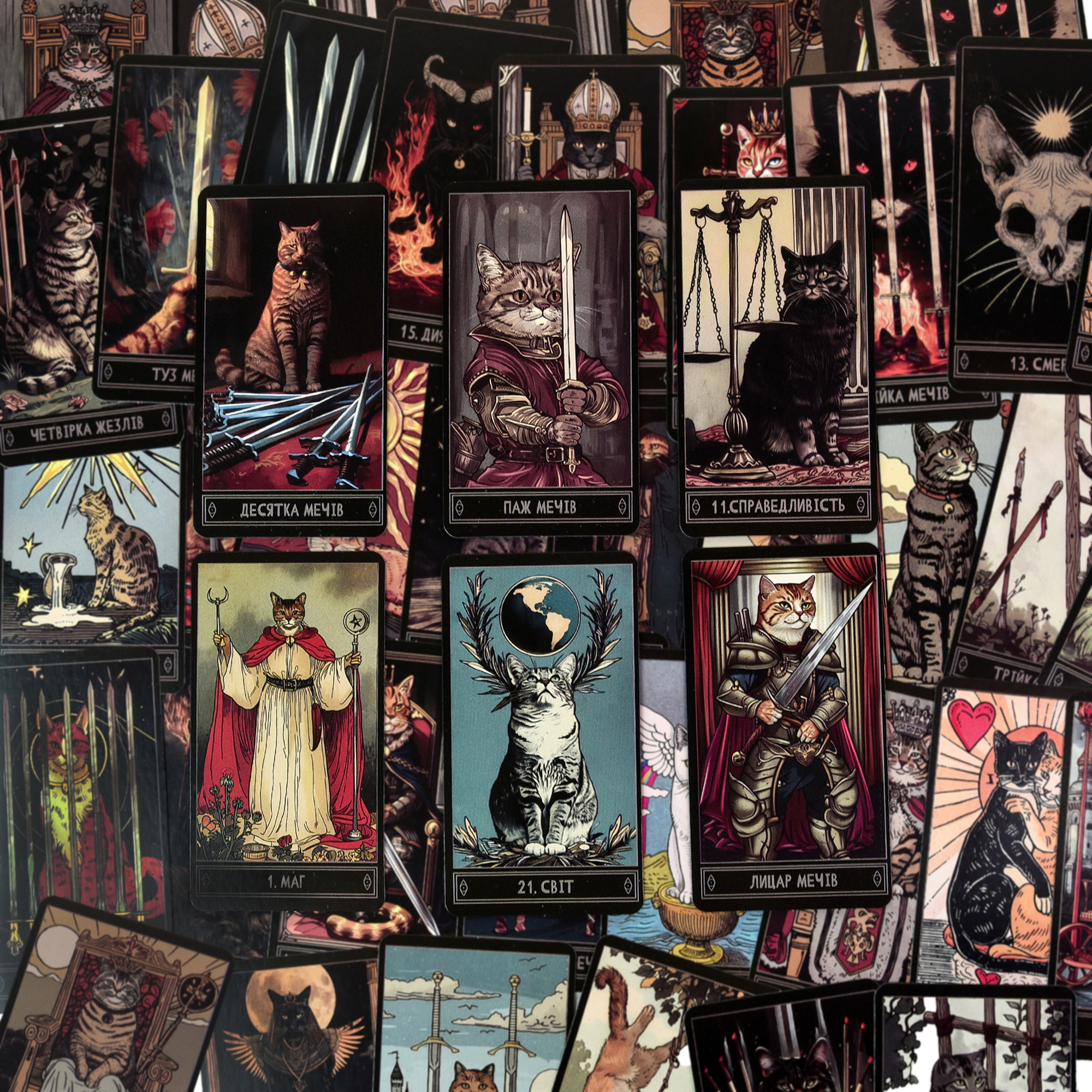 Карты «Таро с котиками» — это особая колода для тех, кто хочет лучше почувствовать себя, прислушаться к интуиции и найти ответы на повседневные вопросы. В этой серии образы котов сочетают в себе мудрость, спокойствие и лёгкую магию. Каждая карта несёт собственное символическое послание, помогая взглянуть на ситуацию под другим углом или увидеть новое жизненное направление.Чтобы начать работу с колодой, достаточно перетасовать карты и вытянуть одну или несколько. Обратите внимание на первые мысли, эмоции и ассоциации — именно в них часто скрыта подсказка. Карты можно использовать для ежедневной рефлексии, внутренней поддержки, принятия решений или как спокойную практику для себя.Эти котики не предсказывают буквально — они лишь мягко намекают, наблюдая из тени и приглашая довериться своим ощущениям, увидеть себя честно, глубоко и без лишнего внешнего шума.Возраст: 12+. Комплектация: коробка, гадальные карты, карточка со ссылкой на инструкцию.