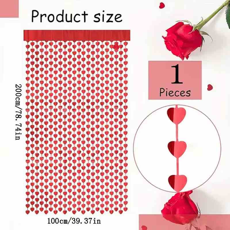 Фотозона шторка 100*20см, Дощова завіса у формі серця, червона, пак. 23*17см