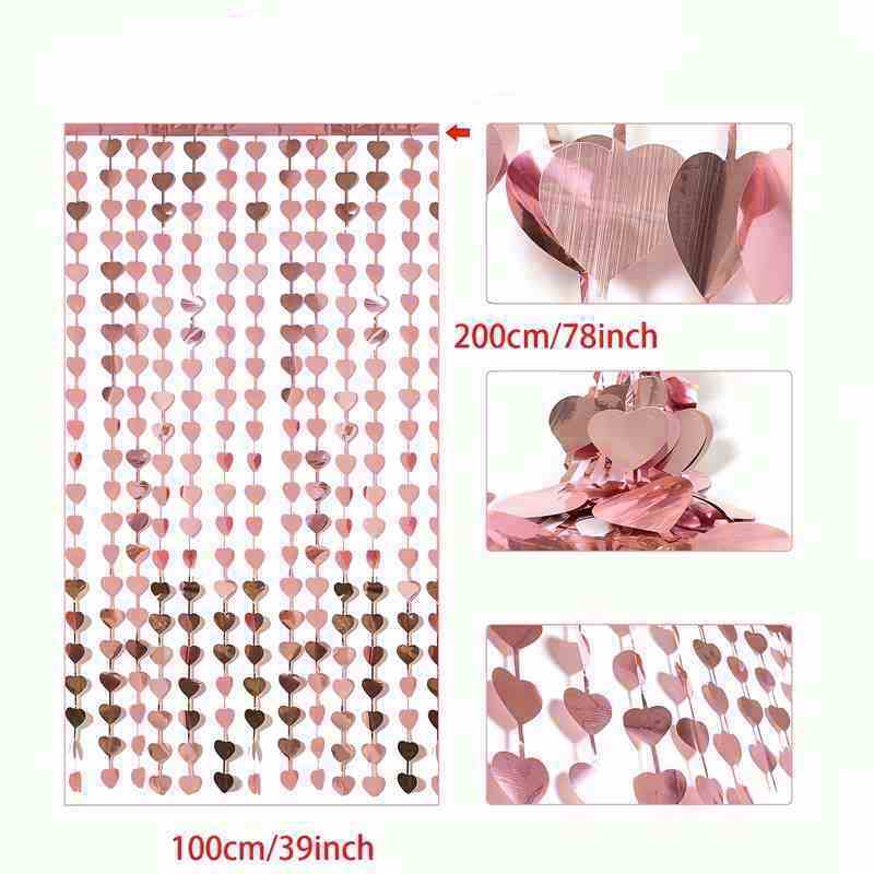 Фотозона шторка 100*200см, Дощова завіса у формі серця, рожеве злото, пак. 23*17см
