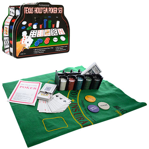 Настільна гра "Покер", 200 фішок, 2кол.карт, сукно, у метал. кор. 26*21*9,5см (12шт)