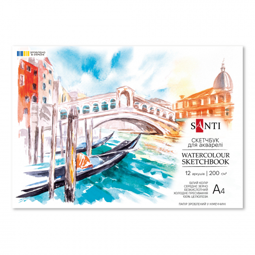 Скетчбук SANTI для акварелі, А4, 12 арк., склейка, 200г/м2
