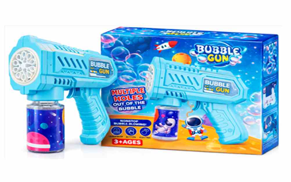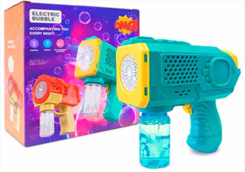 Мильні бульбашки, пістолет, 11см, механічний, світло, запаска 6см, на бат(табл), 17*15*4см (108шт)