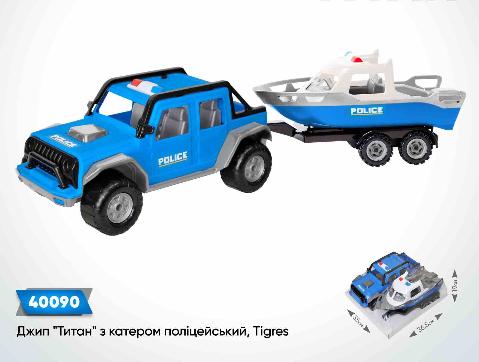 Джип "Титан" з катером поліцейський, під слюдою 35*36,5*19см,ТМ Wader