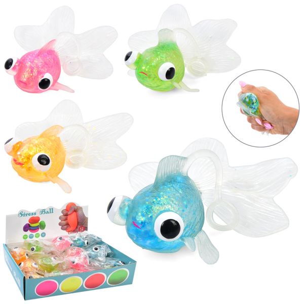 Іграшка-антистрес рибка, 12см, тягнеться, глітер, довга ручка, ЦІНА ЗА 1ШТ, 4 кольори, в дисплеї, 25*18*6см