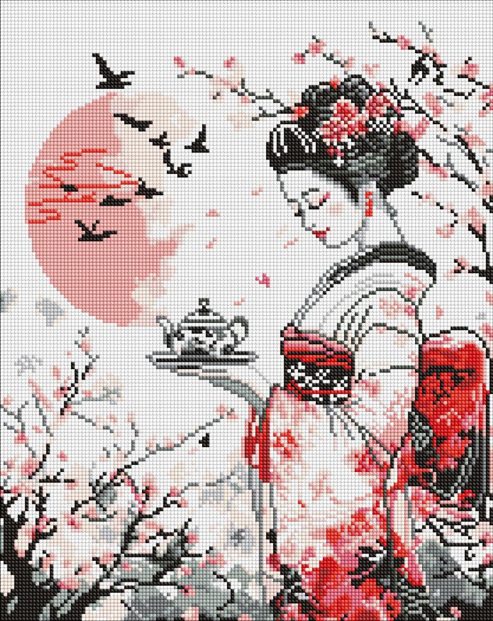 Алмазна мозаїка "Гейша і чай" 40х50см, термопакет, ТМ Ідейка, Україна
