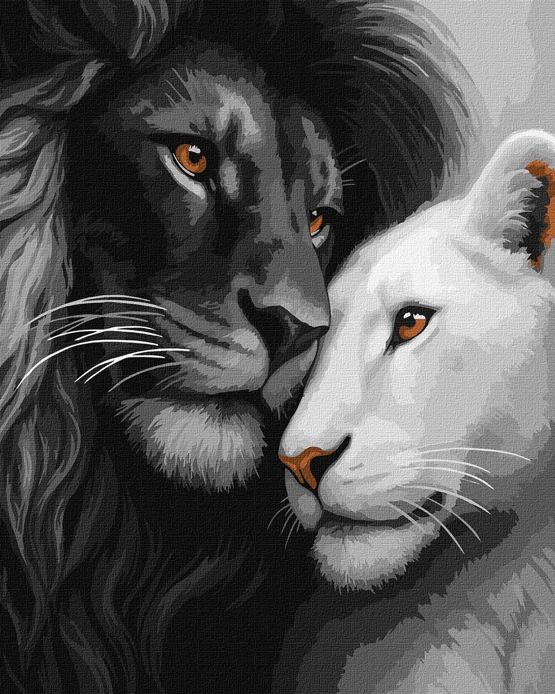 Картина за номерами "Закохані леви" 40х50см, термопакет, ТМ Ідейка, Україна