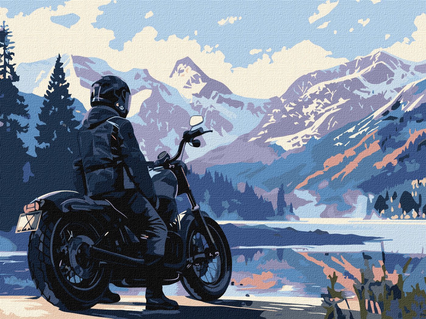 Картина за номерами "Мотоцикліст у горах" 30х40см, термопакет, ТМ Ідейка, Україна