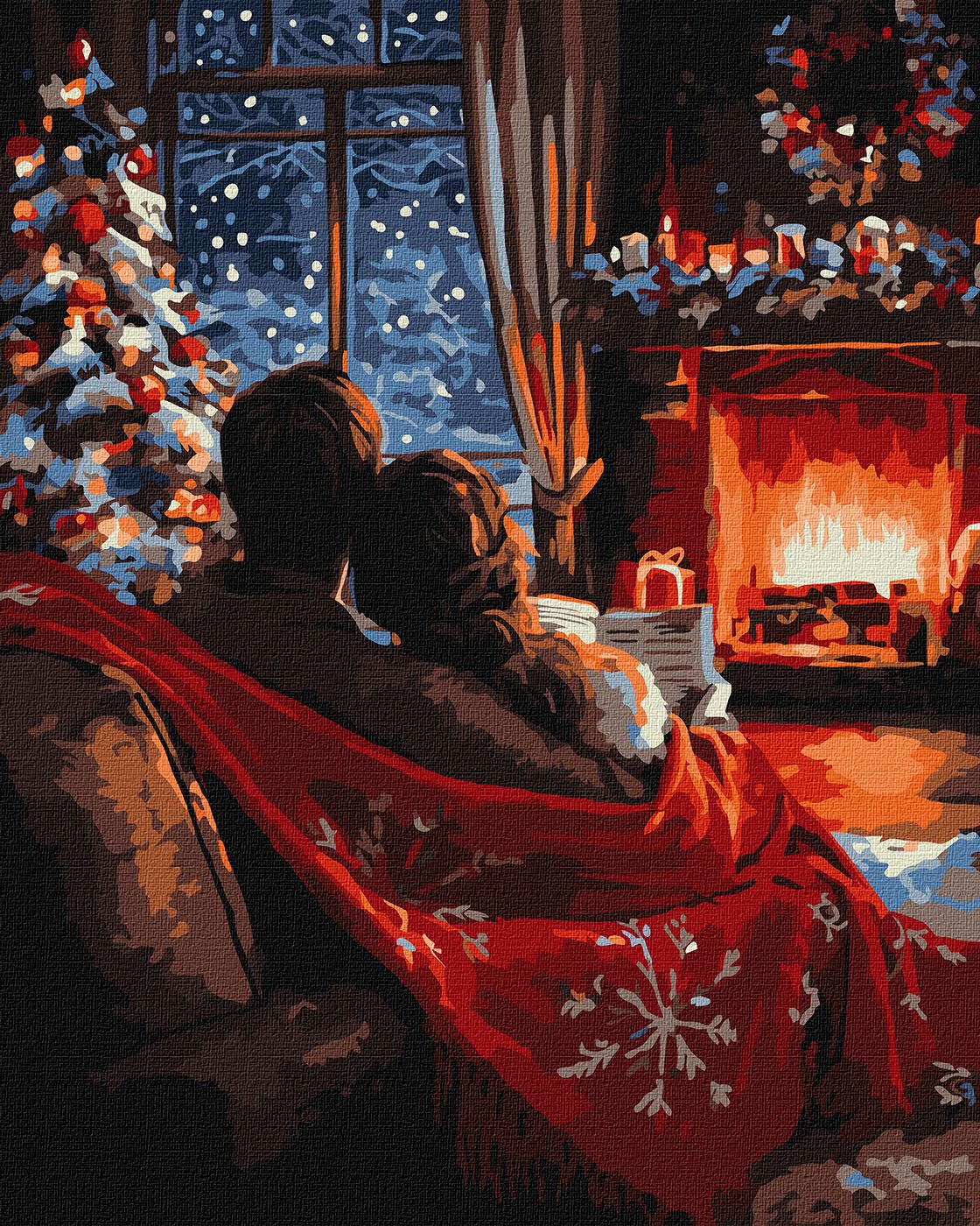 Картина за номерами "Пара біля каміну" 40х50см, термопакет, ТМ Ідейка, Україна