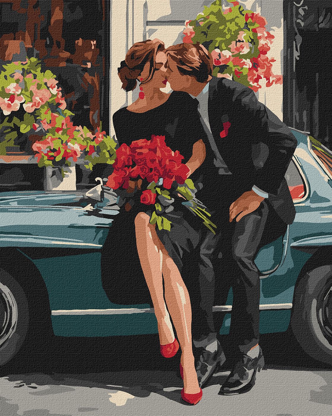 Картина за номерами "Романтична пара біля авто" 40х50см, термопакет, ТМ Ідейка, Україна