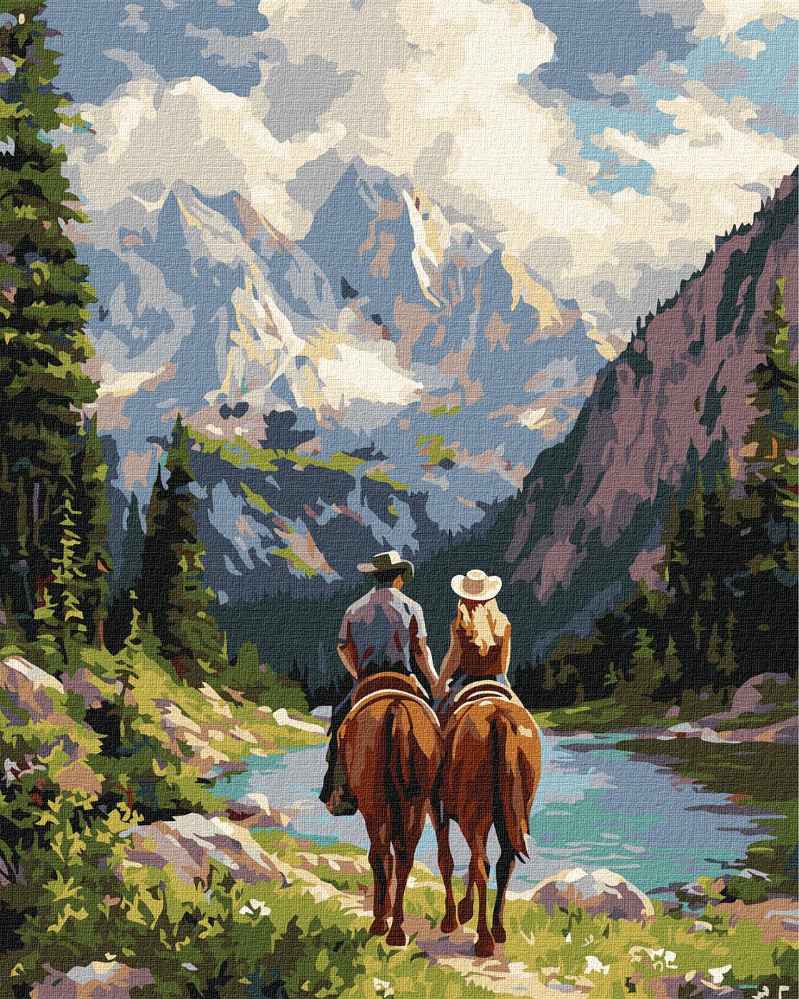 Картина за номерами "Пара вершників у горах" 40х50см, термопакет, ТМ Ідейка, Україна