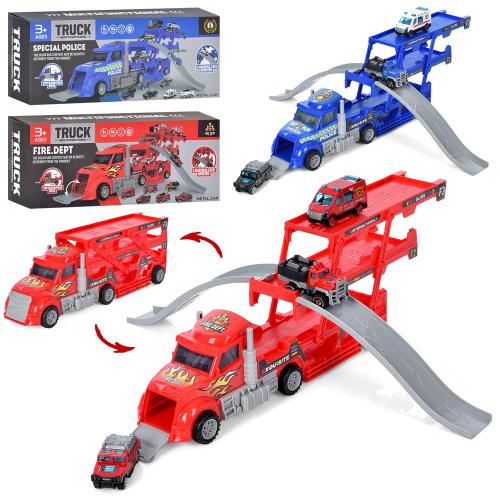 Трейлер 31см, машинки (мет) 7см 3шт, 2 види (поліц,пожеж), в кор. 34*13*8,5см (18шт)
