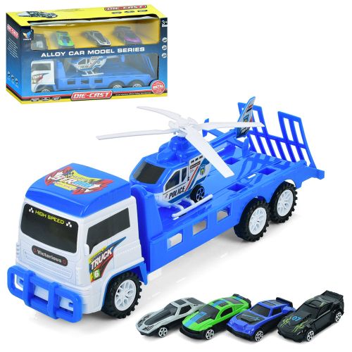 Трейлер інерція, 29см, вертоліт-поліція, машинки-4шт/7см/метал, 3 види, в кор. 30,5*16,5*9см (36шт)