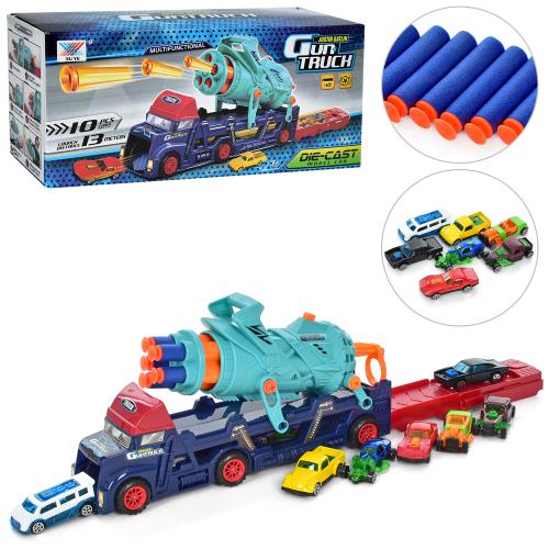 Трейлер 30см, машинки 8шт (7см), стріляє м'якими кулями 10шт, в кор. 31*13,5*9,5см (12шт)