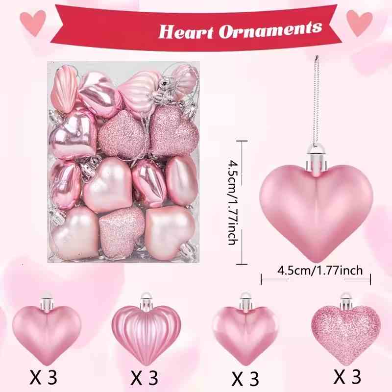 Набір 12шт підвісок серце рожевих, в кор. 8*9*6см