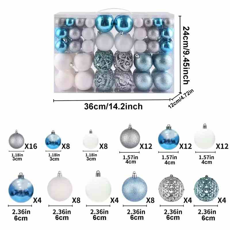 Набір 100шт блакитний кульок на ялинку, в кор. 36*24*12см