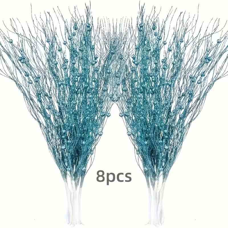 Гілки з ягодами Різдв'яні світло блакитні 8шт., 43см, пак. 44*13см