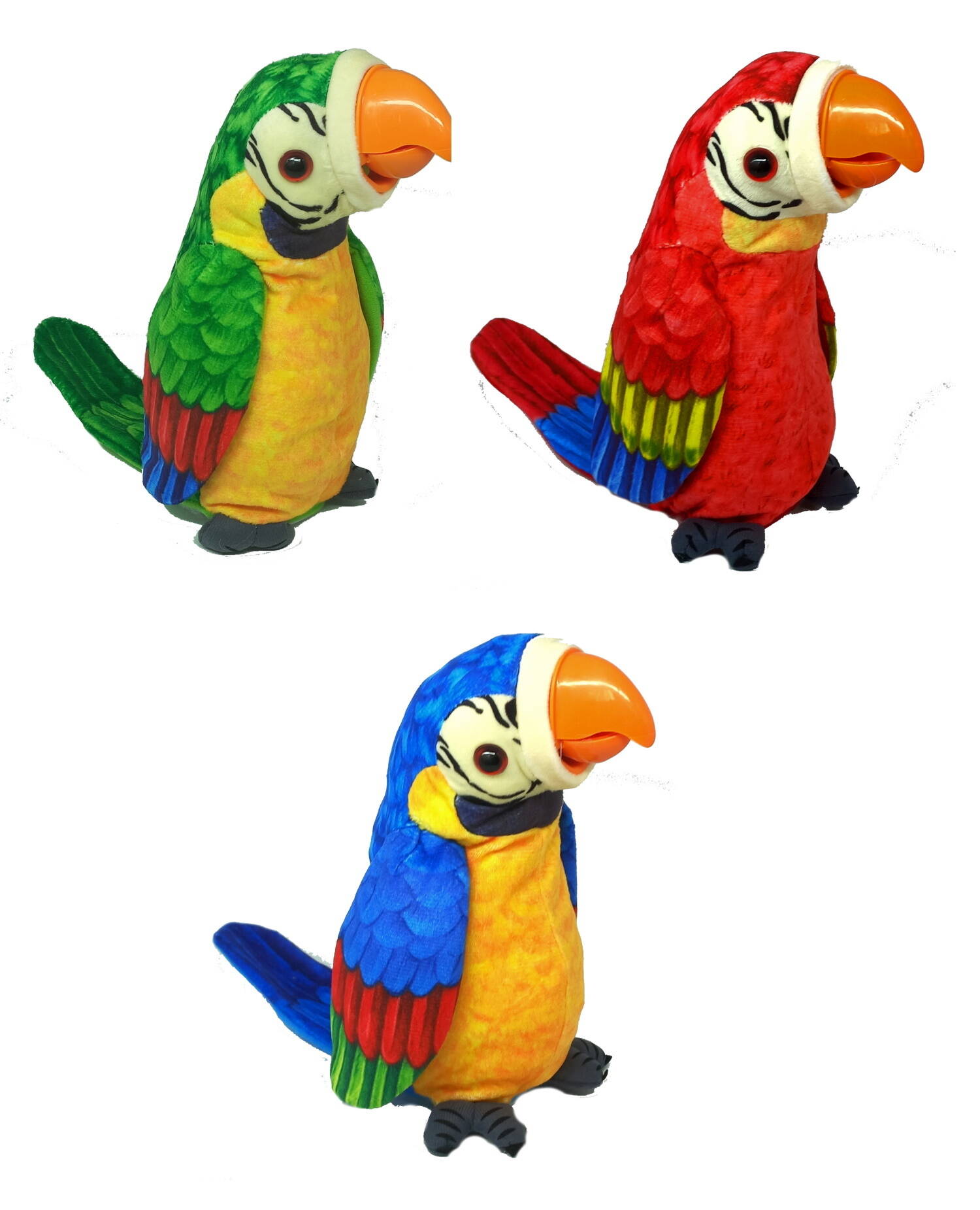 М'яка інтерактивна іграшка папуга 23см, повтор голосу, дзьоб ворушиться, 3 кольори (48шт/2)