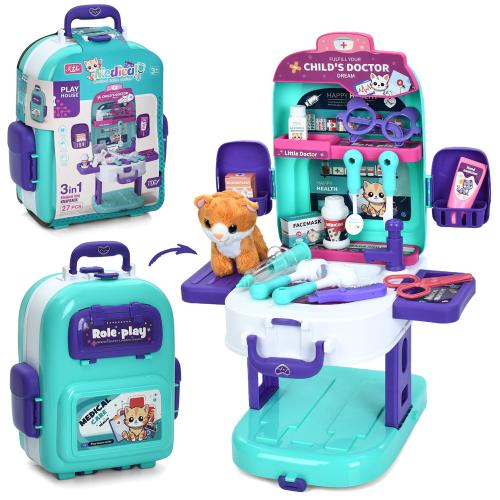 Набір гральний «грумер», набір лікаря, 3в1(стіл 39*30*51см, чемодан), кіт (плюш,11см), мийка-ллється вода(механіч), 27пр, в кор. 23*31*13,5см (24шт)