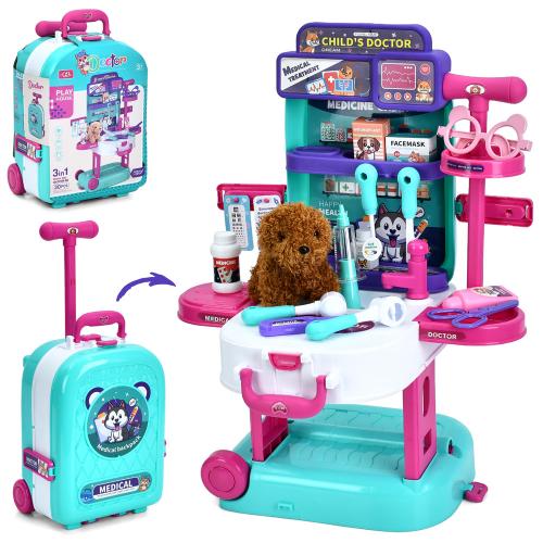 Набір гральний «грумер» 3в1(стіл 39*30*53см,чемодан на колесах,кол.бокс), собака12см, мед.інструмент, 30пред, в кор. 22*31*15,5см (24шт)