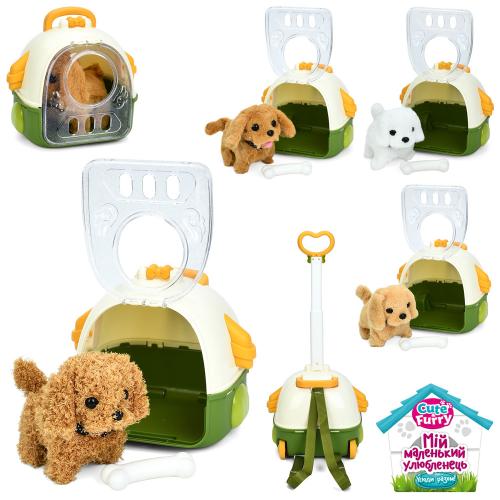 Собака 16см, ходить, звук, рухливий хвіст, плюш, кістка, 4 види, рюкзак (2колеса,ручка), пак. 21*20*17см (24шт)