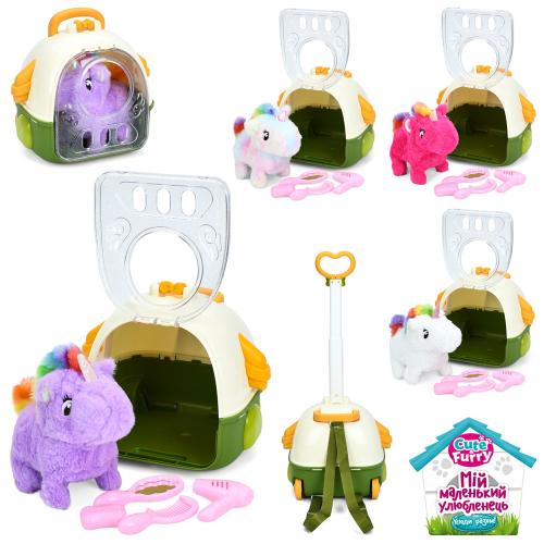 Конячка 18см, ходить, звук, рухливий хвіст, плюш, набір грумера, 4 види, рюкзак (2колеса,ручка), пак. 21*20*17см (24шт)