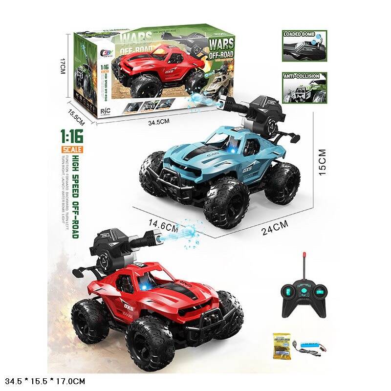 Джип 24см р/к, акумулятор, 1:16, стріляє водяними кулями, світло, гумові колеса, USBзарядне, 2 кольори, в кор. 34,5*17*15,5см (12шт)