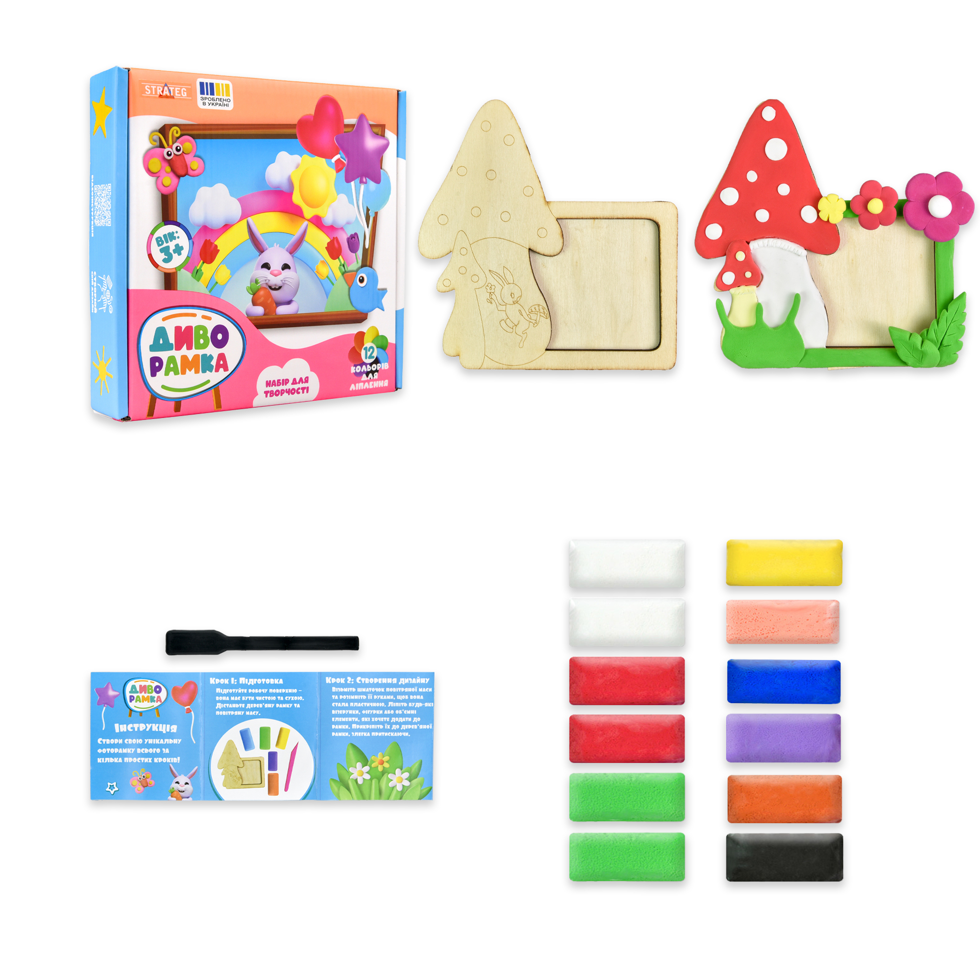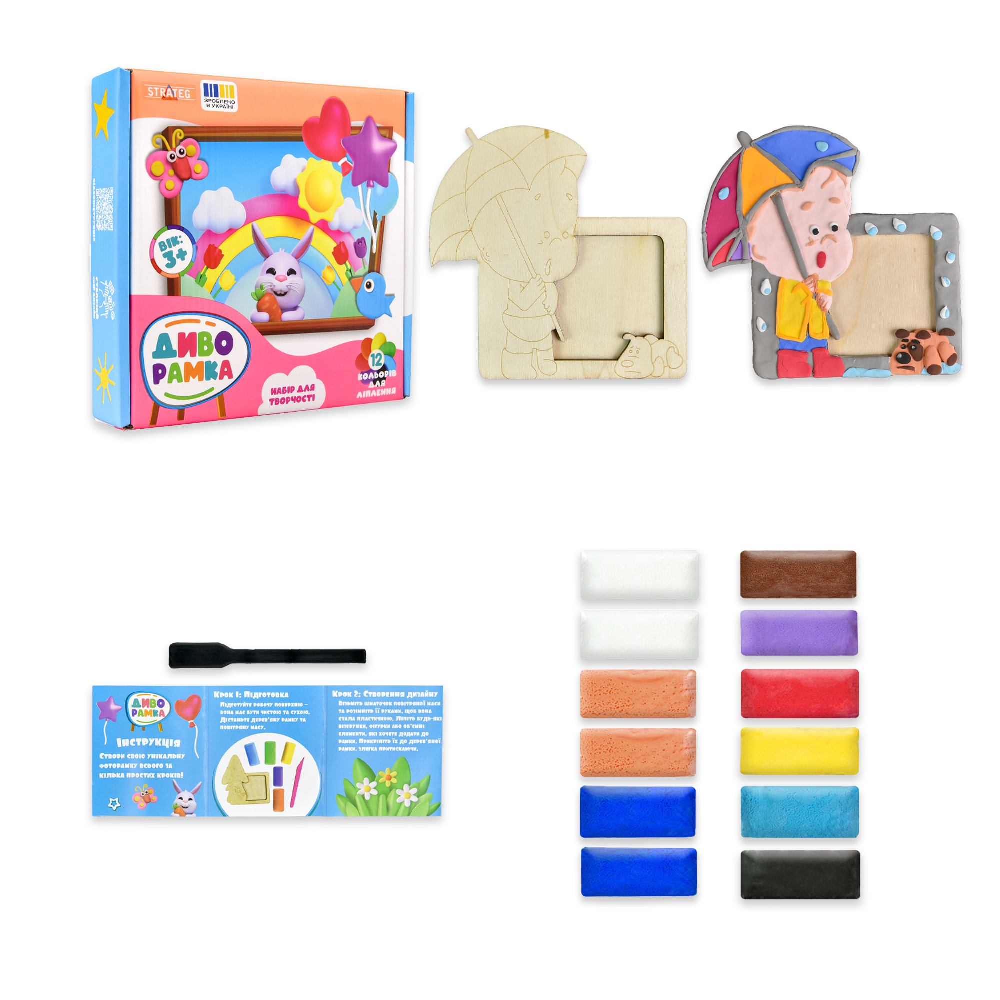Набір для творчості «Диворамка» — це чудова можливість створити власну фоторамку в унікальному стилі. Завдяки масі для ліплення та спеціальному інструменту дитина може прикрасити дерев’яну основу за своїм бажанням: виліпити візерунки, квіти чи смішних звірят. Такий творчий процес розвиває уяву, дрібну моторику та естетичний смак.Набір ідеально підходить для дітей від 3 років і стане гарним подарунком для маленьких майстрів. Готова рамка збереже найтепліші спогади у яскравому оформленні.Комплектація: коробка (картон), маса для ліплення — 12 шт., стек (пластик), рамка (фанера), інструкція (папір).