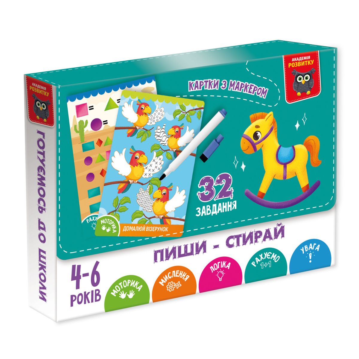 Гра розвиваюча картки пиши-стирай "Коник", в кор. 16*12*2см, ТМ Vladi Toys, Україна
