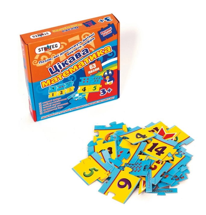 "Цікава математика" - це набір розвиваючих пазлів для знайомства дитини з цифрами і числами. Граючи з пазлами малюк навчиться складати числові ряди, з'єднувати предметні малюнки з числами і порівнювати їх між собою. Проста гра спрямована на комплексний розвиток дитини, тому вона впливає на розвиток логічного мислення, дрібної моторики і пам'яті.У комплекті 63 пазла і інструкція з декількома іграми, завдяки яким процес навчання стає цікавим і різноманітним. Набір розвиваючих пазлів підходить також в якості навчального посібника в дошкільних установах.Рекомендований вік: від 3 років.Комплектація гри: 63 пазла, інструкція.Кількість гравців: від 1.Гра українською мовою.