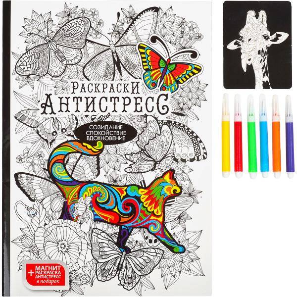 Розмальовка Антистрес з фломастерами, пак. 35*21см (40шт)