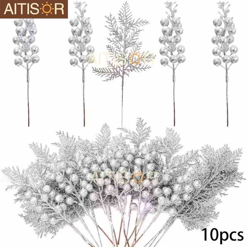 Гілки сосни та гілки з ягодами срібло 30шт, пак. 35*20см